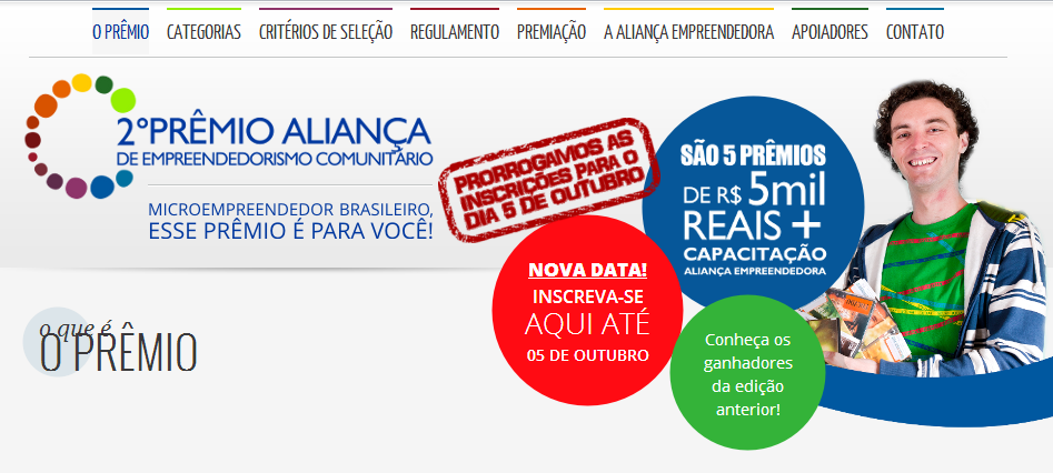 Estão abertas até o dia 5 de outubro o 2º Prêmio Aliança de Empreendedorismo Comunitário, promovida pela Aliança Empreendedora para reconhecer e premiar
