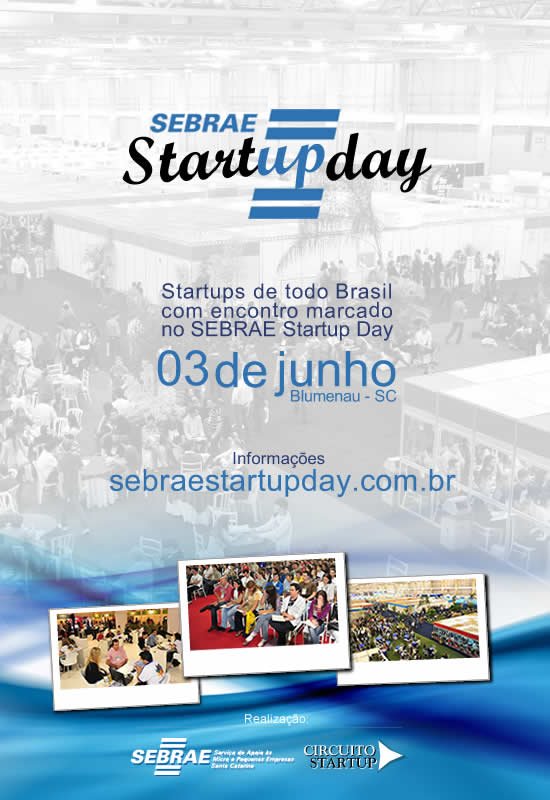 Empreendedores de todo o Brasil que buscam investimento para suas ideias poderão participar do Sebrae Startup Day, que será realizado no dia 3 de junho durante a Feira do Empreendedor, em Blumenau. Esta edição da feira será de 31 de maio a 3 de junho, no Parque Vila Germânica.