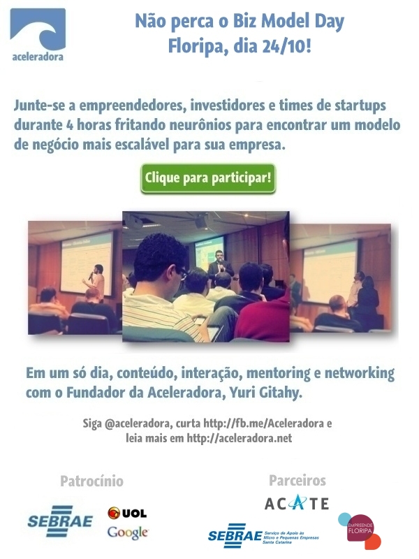 Programe-se para o dia 24/10. O Empreende Floripa é parceiro do Biz Model Day Florianópolis, organizado pela Aceleradora.