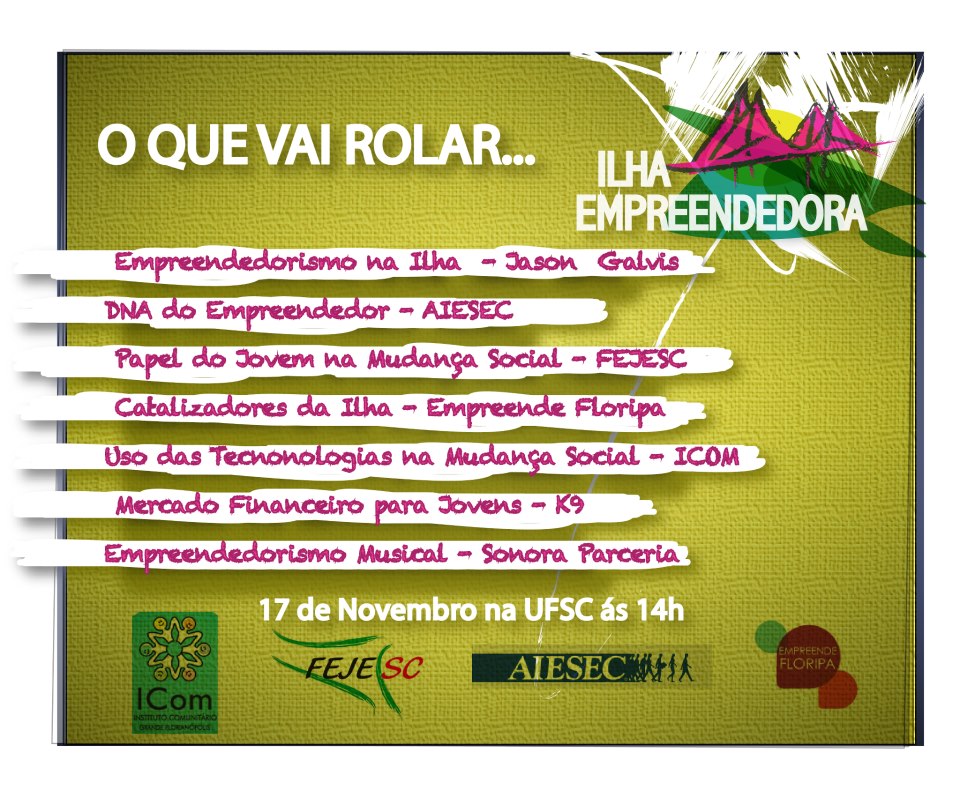 Realizadores: AIESEC em FLORIANÓPOLIS, EMPREENDE FLORIPA, FEJESC e ICOM.