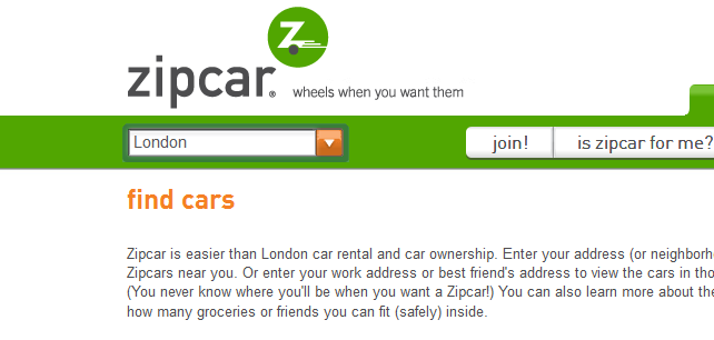 Este serviço é super prático, pois em vários pontos de Londres há carros ZipCar estacionados. Você faz um cadastro online e recebe um cartão. Através do site deles você encontra o carro mais próximo, paga o número de horas que deseja utilizar e faz a reserva. O seu cartão recebe uma autorização para abrir a porta do carro ao tocar o para-brisas e dentro do porta luvas estão as chaves. Logo você tem que devolver o carro no mesmo ponto, dentro das horas que você o alugou, mas pode estender se quiser. Ah! e eles alugam Vans também, para compras de móveis ou mudanças! Eu acho um serviço incrível!