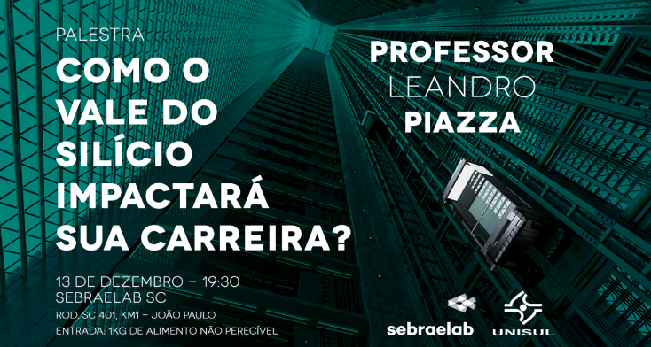 Uma imersão na educação do Vale do Silício! O SebraeLab SC e a Unisul realizam nesta semana a palestra “Como o Vale do Silício impactará na sua carreira?” O palestrante convidado é o professor Leandro Piazza.