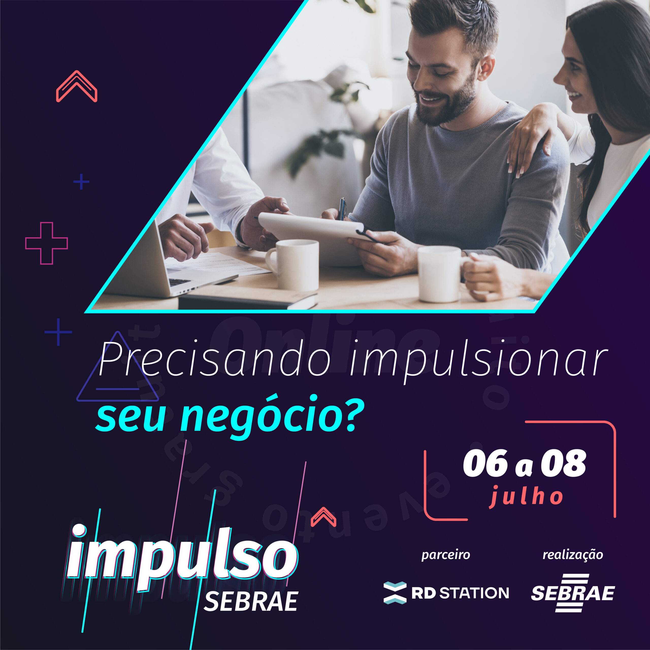 Pensando em auxiliar os pequenos negócios a impulsionarem seus negócios e venderem mais, o Sebrae/SC, com apoio da RD Station, promove o “Impulso Sebrae”, que será realizado entre os dias 6 e 8 de julho. O evento, totalmente online e gratuito, reunirá palestrantes referências no assunto, cursos, materiais e conteúdos exclusivos aos empresários. As inscrições podem ser realizadas em www.impulsosebrae.com.br.